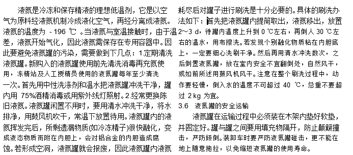 液氮罐地使用壽命和工作人員安全,同時(shí)對(duì)所存放的凍精質(zhì)量也非常重要。筆者根據(jù)多年的工作經(jīng)驗(yàn),并查閱了相關(guān)的資料,總結(jié)出使用液氮罐時(shí)要注意的幾方面事項(xiàng),僅供推廣人員在使用時(shí)參考。
